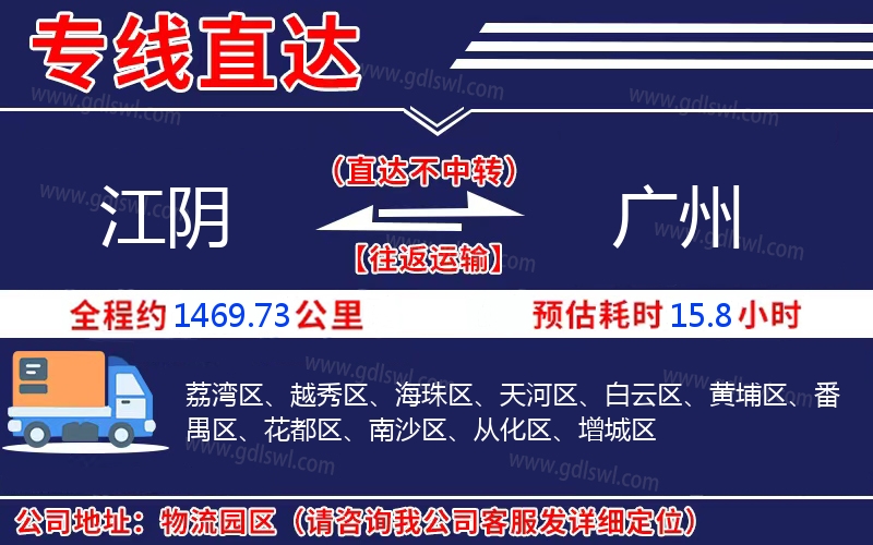江陰到廣州物流專線是一條連接江陰和廣州的貨物運輸線路,由陸順物流公司提供直達不中轉(zhuǎn)運輸服務(wù),能為企業(yè)、工廠、貿(mào)易商以及個人提供高效、便捷、可靠的貨運解決方案