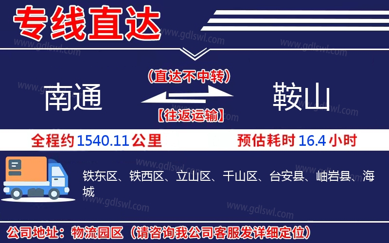 南通到鞍山物流專(zhuān)線是一條連接南通和鞍山的貨物運(yùn)輸線路,由陸順物流公司提供直達(dá)不中轉(zhuǎn)運(yùn)輸服務(wù),能為企業(yè)、工廠、貿(mào)易商以及個(gè)人提供高效、便捷、可靠的貨運(yùn)解決方案