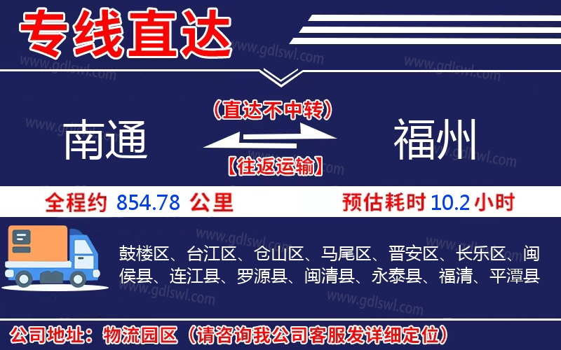 南通到福州物流專線是一條連接南通和福州的貨物運(yùn)輸線路,由陸順物流公司提供直達(dá)不中轉(zhuǎn)運(yùn)輸服務(wù),能為企業(yè)、工廠、貿(mào)易商以及個(gè)人提供高效、便捷、可靠的貨運(yùn)解決方案