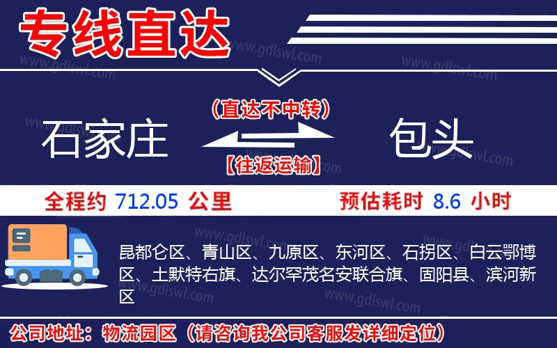 石家莊到包頭物流專線是一條連接石家莊和包頭的貨物運(yùn)輸線路,由陸順物流公司提供直達(dá)不中轉(zhuǎn)運(yùn)輸服務(wù),能為企業(yè)、工廠、貿(mào)易商以及個(gè)人提供高效、便捷、可靠的貨運(yùn)解決方案