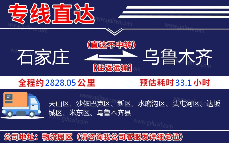石家莊到烏魯木齊物流專線是一條連接石家莊和烏魯木齊的貨物運(yùn)輸線路,由陸順物流公司提供直達(dá)不中轉(zhuǎn)運(yùn)輸服務(wù),能為企業(yè)、工廠、貿(mào)易商以及個(gè)人提供高效、便捷、可靠的貨運(yùn)解決方案