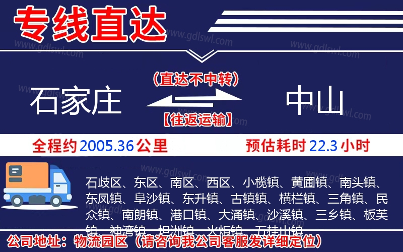 石家莊到中山物流專線是一條連接石家莊和中山的貨物運(yùn)輸線路,由陸順物流公司提供直達(dá)不中轉(zhuǎn)運(yùn)輸服務(wù),能為企業(yè)、工廠、貿(mào)易商以及個(gè)人提供高效、便捷、可靠的貨運(yùn)解決方案
