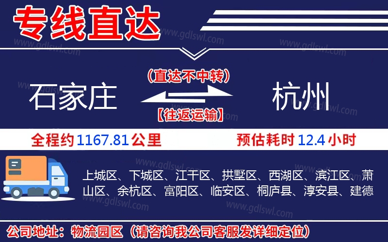 石家莊到杭州物流專線是一條連接石家莊和杭州的貨物運(yùn)輸線路,由陸順物流公司提供直達(dá)不中轉(zhuǎn)運(yùn)輸服務(wù),能為企業(yè)、工廠、貿(mào)易商以及個(gè)人提供高效、便捷、可靠的貨運(yùn)解決方案