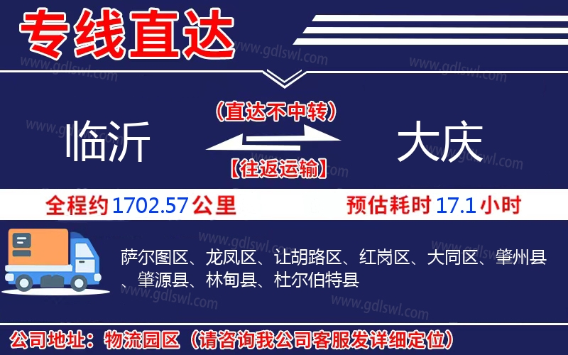 臨沂到大慶物流專線是一條連接臨沂和大慶的貨物運輸線路,由陸順物流公司提供直達不中轉(zhuǎn)運輸服務(wù),能為企業(yè)、工廠、貿(mào)易商以及個人提供高效、便捷、可靠的貨運解決方案
