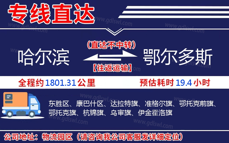 哈爾濱到鄂爾多斯物流專線是一條連接哈爾濱和鄂爾多斯的貨物運輸線路,由陸順物流公司提供直達(dá)不中轉(zhuǎn)運輸服務(wù),能為企業(yè)、工廠、貿(mào)易商以及個人提供高效、便捷、可靠的貨運解決方案