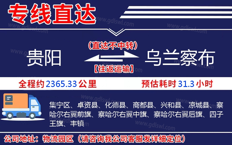 貴陽(yáng)到烏蘭察布物流專線是一條連接貴陽(yáng)和烏蘭察布的貨物運(yùn)輸線路,由陸順物流公司提供直達(dá)不中轉(zhuǎn)運(yùn)輸服務(wù),能為企業(yè)、工廠、貿(mào)易商以及個(gè)人提供高效、便捷、可靠的貨運(yùn)解決方案