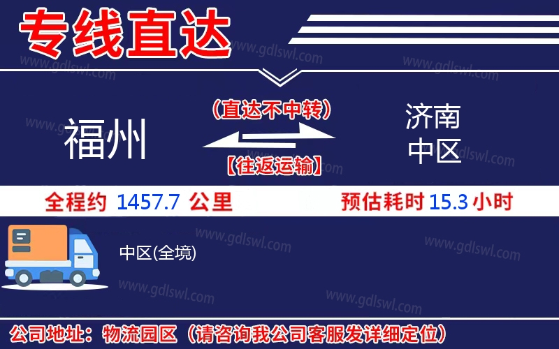 福州到濟(jì)南中區(qū)物流專線是一條連接福州和濟(jì)南中區(qū)的貨物運(yùn)輸線路,由陸順物流公司提供直達(dá)不中轉(zhuǎn)運(yùn)輸服務(wù),能為企業(yè)、工廠、貿(mào)易商以及個(gè)人提供高效、便捷、可靠的貨運(yùn)解決方案