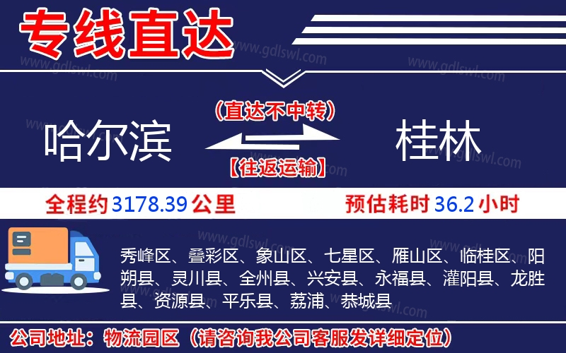 哈爾濱到桂林物流專線是一條連接哈爾濱和桂林的貨物運輸線路,由陸順物流公司提供直達不中轉(zhuǎn)運輸服務(wù),能為企業(yè)、工廠、貿(mào)易商以及個人提供高效、便捷、可靠的貨運解決方案