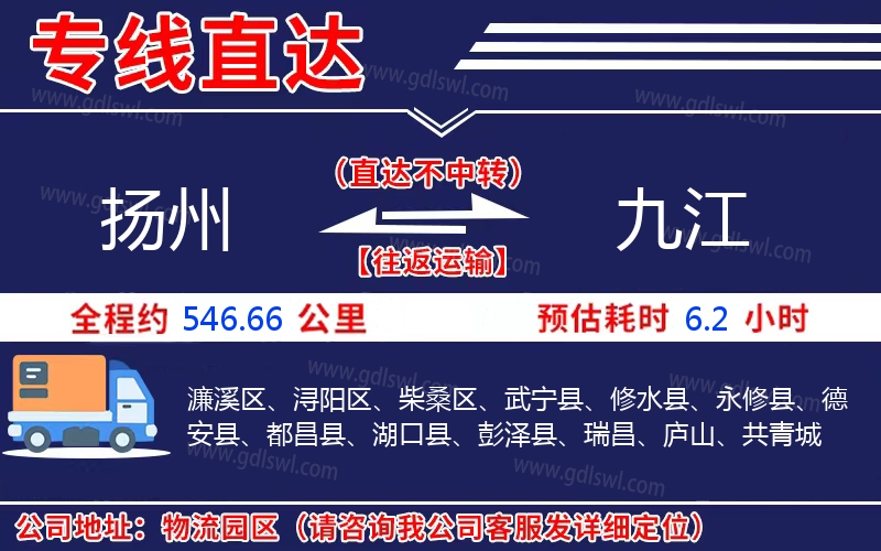 揚州到九江物流專線是一條連接揚州和九江的貨物運輸線路,由陸順物流公司提供直達(dá)不中轉(zhuǎn)運輸服務(wù),能為企業(yè)、工廠、貿(mào)易商以及個人提供高效、便捷、可靠的貨運解決方案